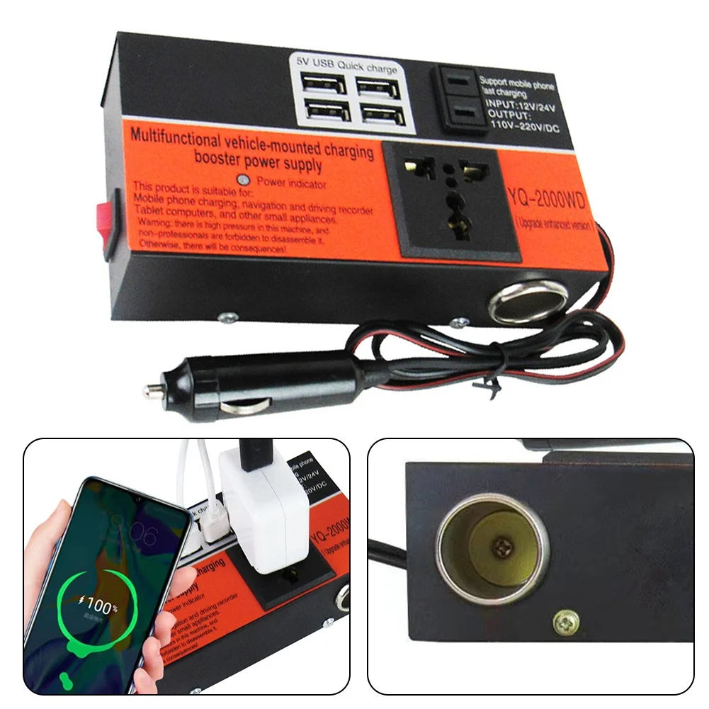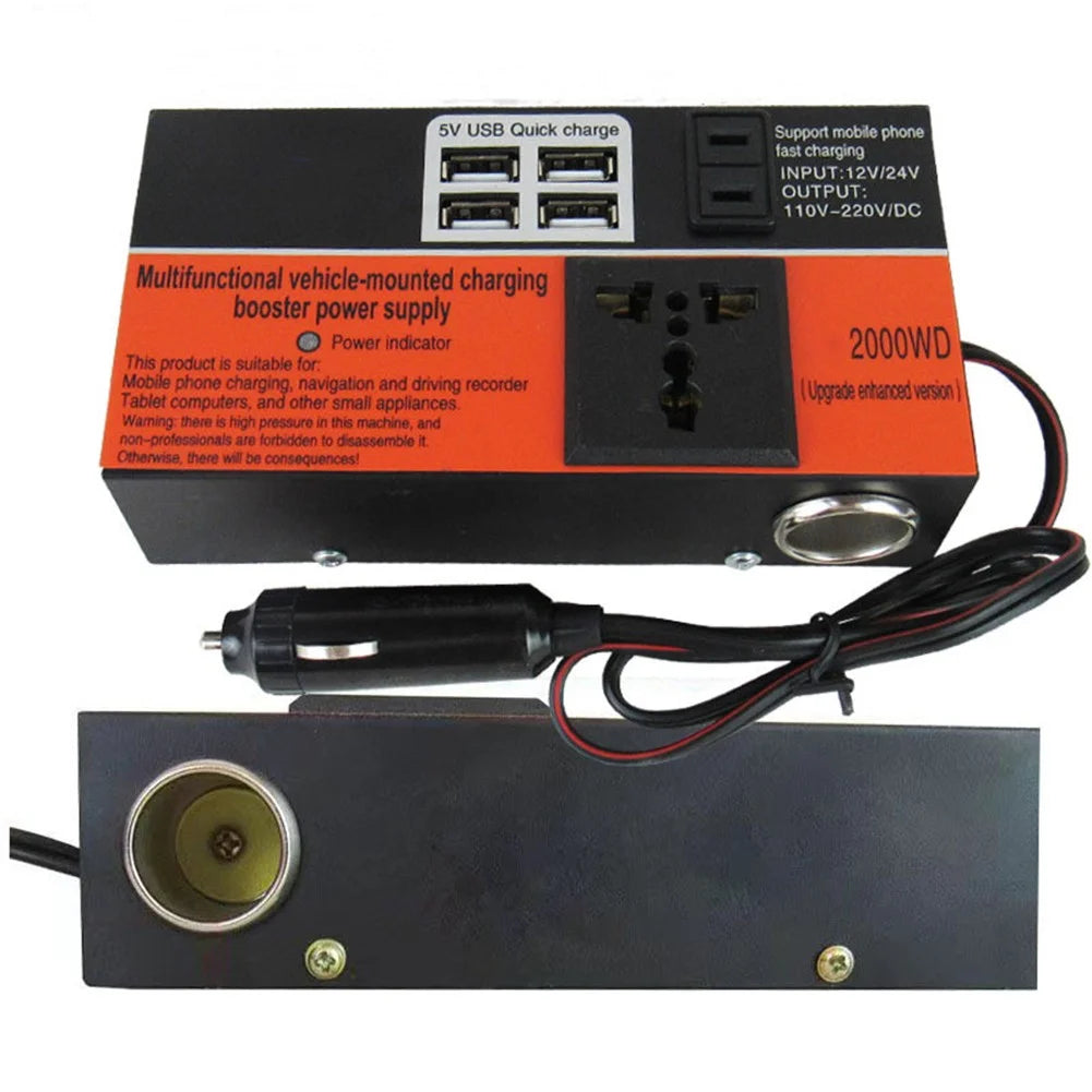 El Convertidor de Coche Inversor de Corriente 1500W es la solución perfecta para mantener tus dispositivos cargados y en funcionamiento mientras estás en movimiento.