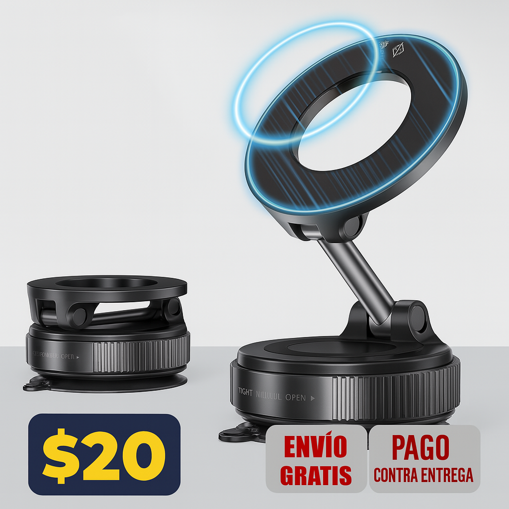 Olvídate de caídas y ajustes incómodos. Este soporte magnético premium sujeta tu teléfono con firmeza y se adapta a cualquier ángulo gracias a su rotación 360° y brazo ajustable 🔄.